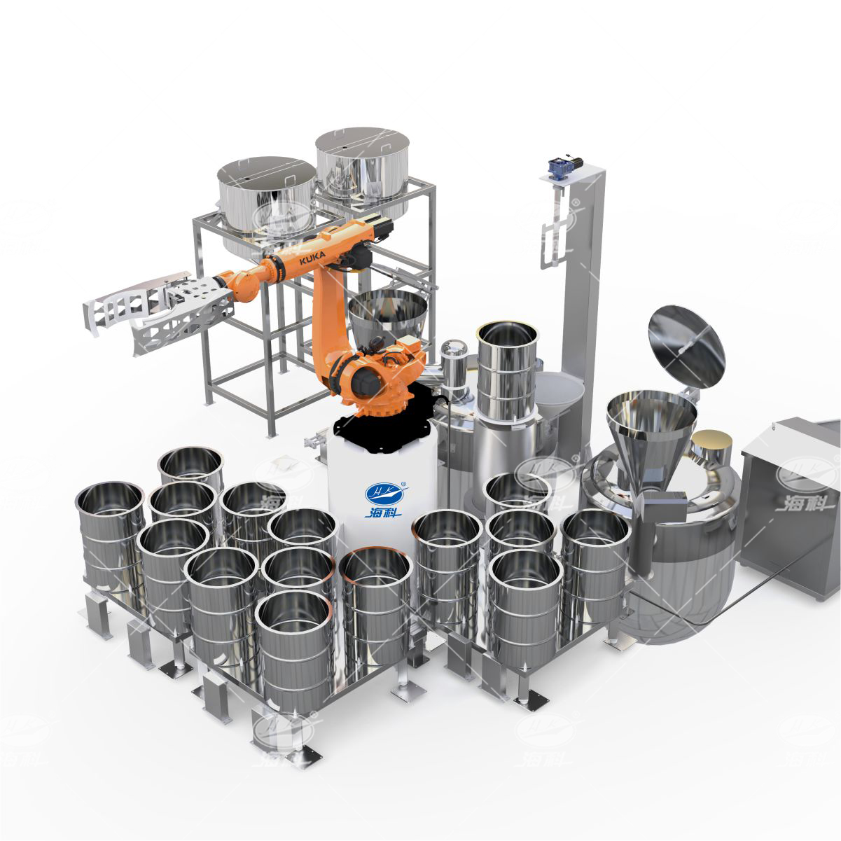 該系統(tǒng)由中央系統(tǒng)控制,采用機(jī)器人抓取投料,過(guò)程穩(wěn)定高速。