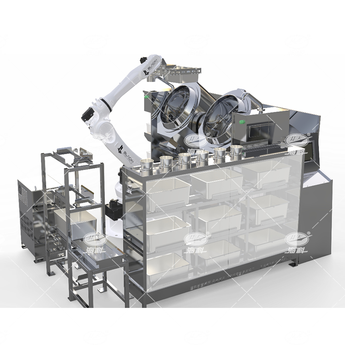 可用于集體用餐的食堂(機(jī)關(guān)、院校、工廠(chǎng)、中央廚房配餐中心等大型食堂)等場(chǎng)景量身打造的烹飪系統(tǒng),主要由空盆/成品智能庫(kù)、凈菜/調(diào)理肉/調(diào)料智能庫(kù)、工控上位機(jī)SaaS軟件系統(tǒng)、數(shù)字化智能炒菜鍋以及工業(yè)級(jí)機(jī)器人組成,工控上位機(jī)對(duì)接云端,接收并統(tǒng)一向各模塊發(fā)出指令。